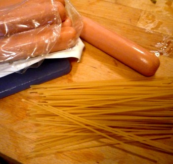 Ingredients: Hotdogs, and Spaghetti Noodles