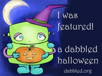Featured on the Dabbled Halloween Extravaganza? Show your pride with a nifty button! Just cut and paste the text below (you can also modify the link to go directly to where you were featured, if ya like):