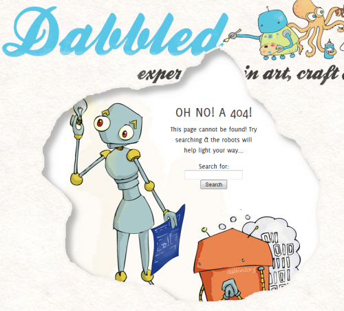 First off, take a look at your current 404 page. If you want to know what it looks like, just type your web address, slash a page that doesn’t exist. So for example: http://Dabbled.org/sldalkgj will take you to Dabbled’s 404 page (which is what inspired this tutorial!) .