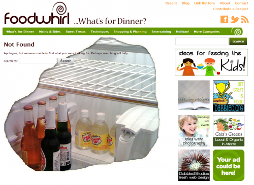 Now, you need to integrate it into your 404 page, which is the page that comes up when a page is not found on the website. Again, I’ll be using the 404 page for Foodwhirl.com in this tutorial.